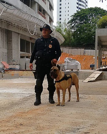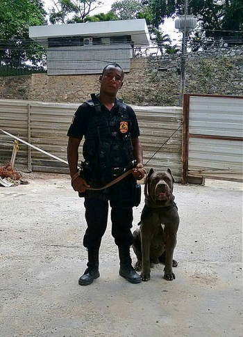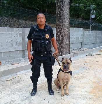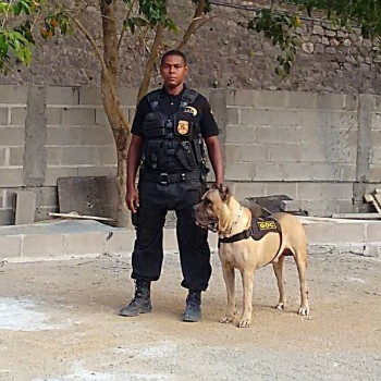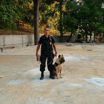 Nessas fotos observamos, que o cão reconhece a farda dos agentes de segurança de uma empresa especializada em segurança com cães. Colocamos em evidência o trabalho da raça cane corso e suas qualidades nos serviços de segurança, guarda de áreas vulneráveis e proteção pessoal.